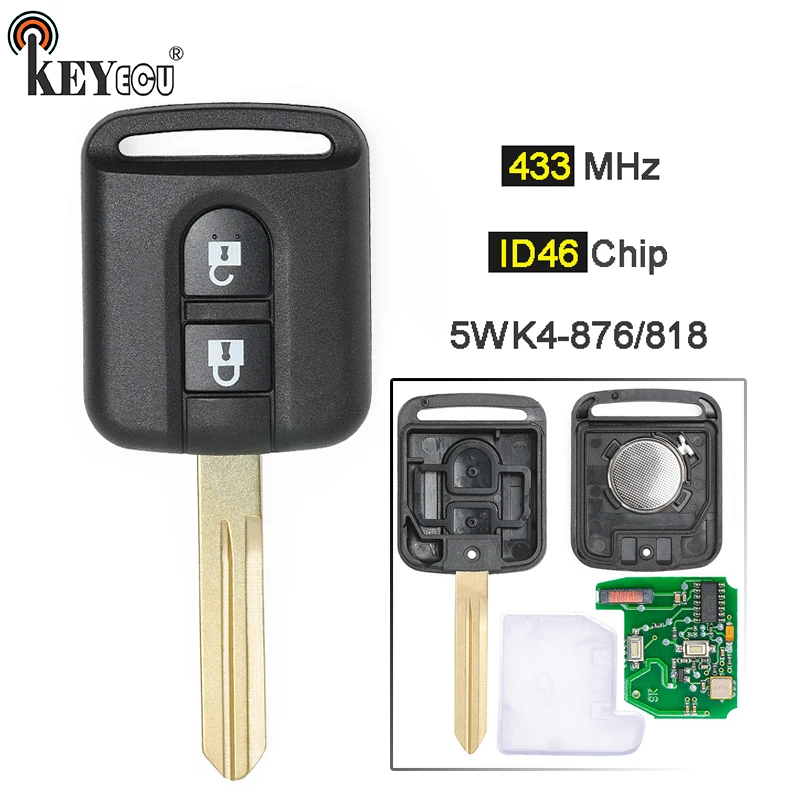 Special Offer KEYECU 433MHz ID46 PCF7946 układu klucz zdalny z dwoma przyciskami Fob dla nissan note NV200 Elgrand X TRAIL Qashqai Navara Micra 5WK4 876 818 Discount 11% Today!
