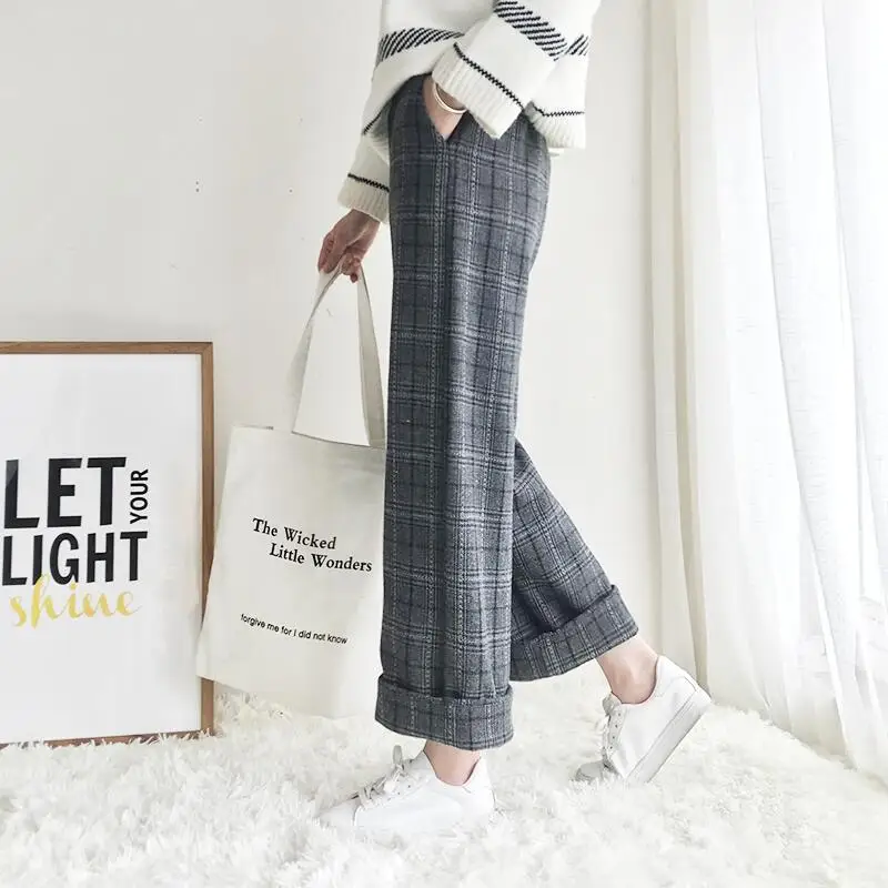 Special Offer Woherb 2019 jesienne zimowe wełniane spodnie w kratę damskie elastyczny, wysoki stan kostki spodnie Plus rozmiar Harajuku spodnie z szerokimi nogawkami Discount 13% Today!
