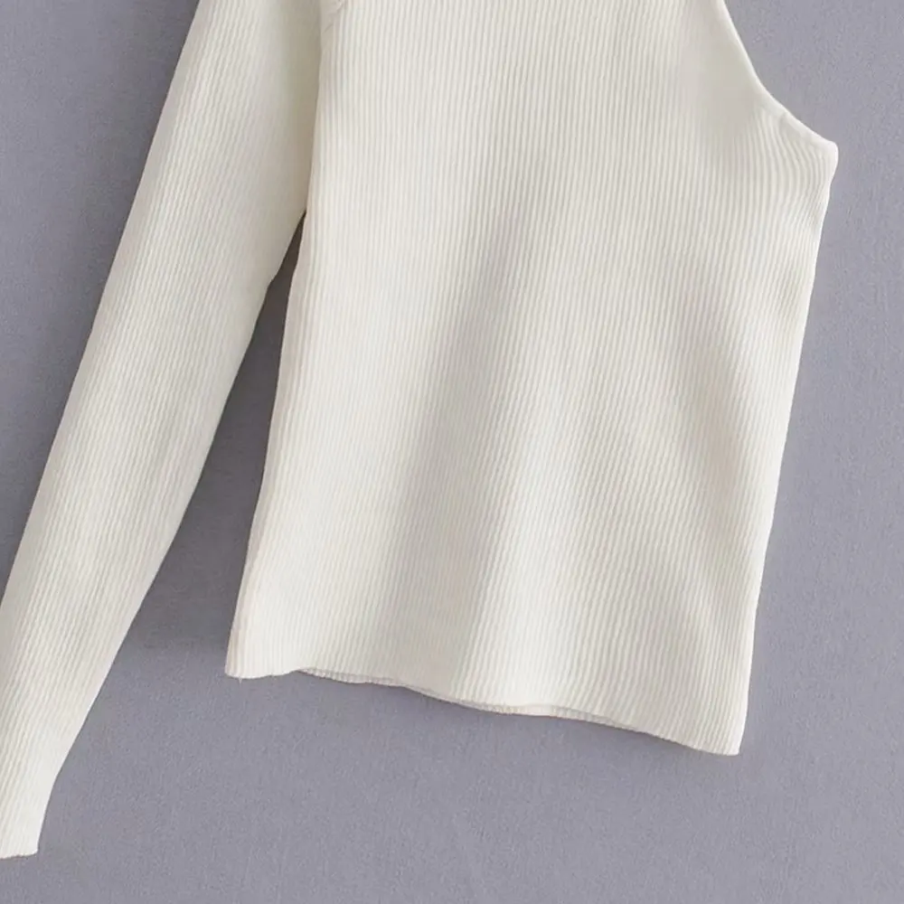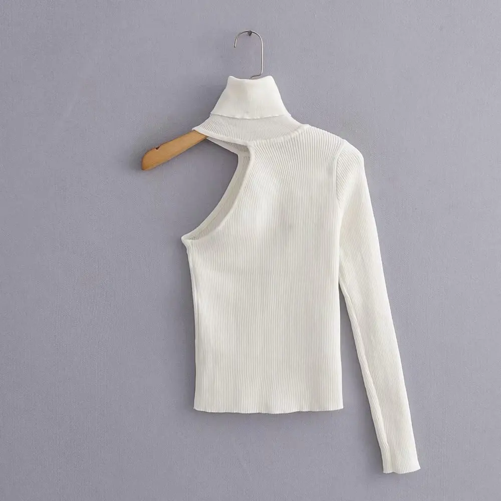 Special Offer Kobiety moda jedno ramię z golfem asymetryczny sweter panie podstawowe z dzianiny na co dzień slim high street chic topy S136 Discount 23% Today!