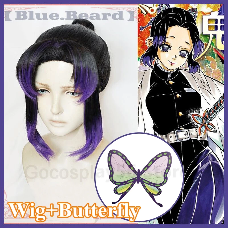 Special Offer Demon Slayer Kochou Shinobu peruka do cosplay Gradient fioletowy Kimetsu no Yaiba syntetyczne włosy dla dorosłych Halloween bezpłatny motyl Discount 28% Today!