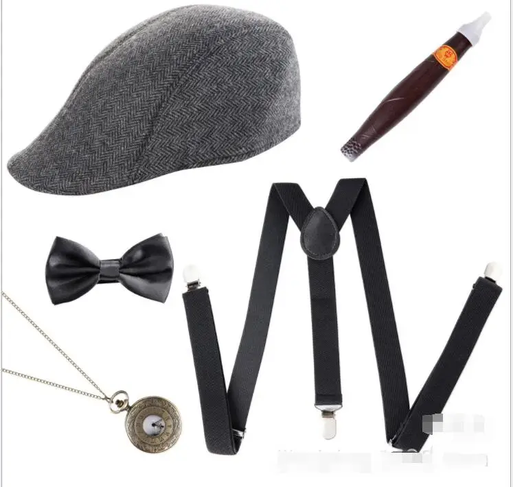 Special Offer Męskie 1920s 20s Gangster zestaw kapelusz szelki krawat cygaro Gatsby kostium akcesoria 1920S FLAPPER GANGSTER akcesoria do kostiumów Discount 9% Today!