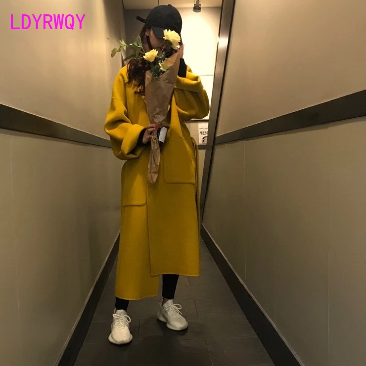 Special Offer 2019 modele jesienne i zimowe koreańska wersja pasków klapa długi akapit imbirowy płaszcz luźny płaszcz z wełny kaszmirowy regularny Discount 22% Today!