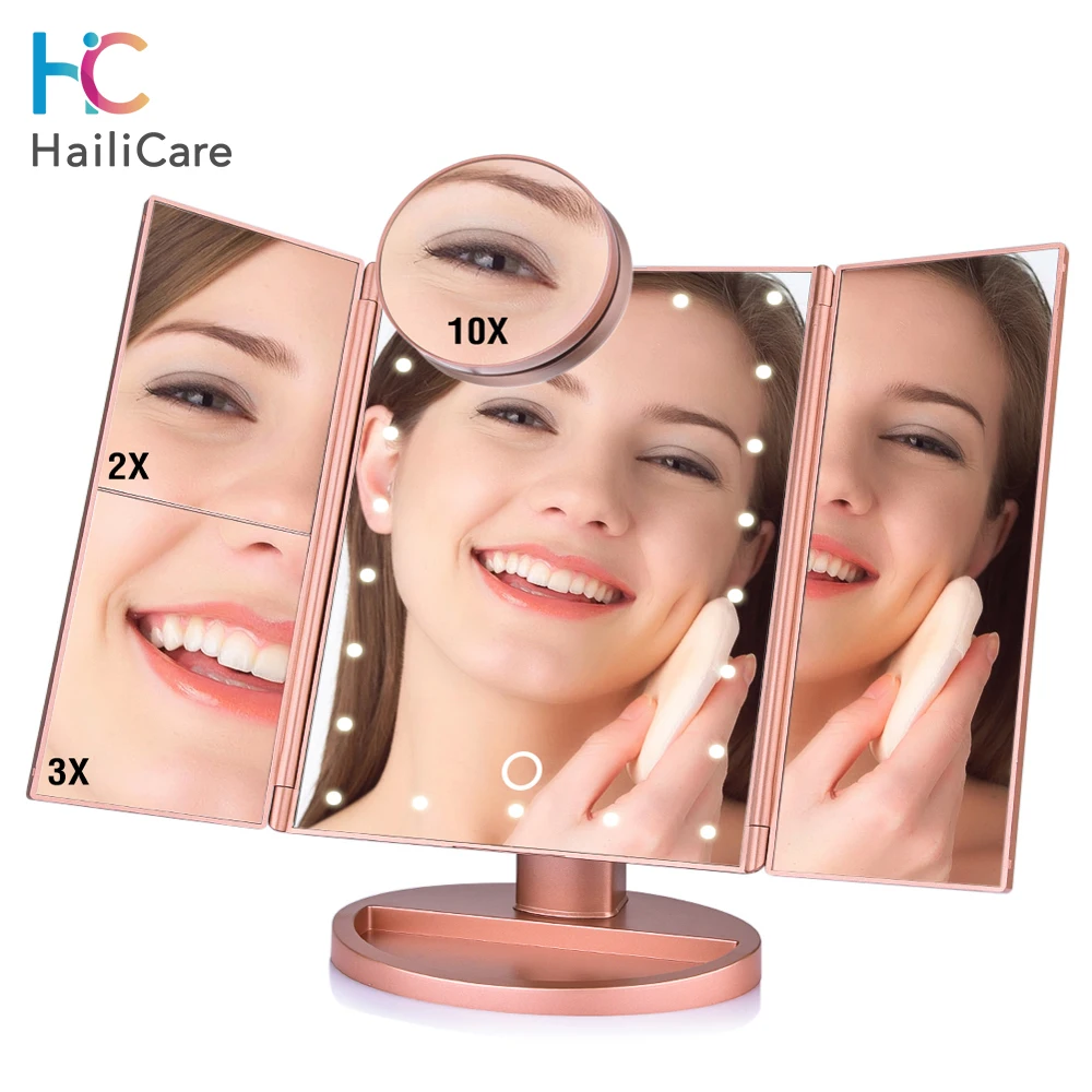 Special Offer 22 ekran dotykowy LED lustro do makijażu 1X 2X 3X 10X lustra powiększające 4 w 1 Tri składany lusterko biurkowe Lights zdrowia przyrząd kosmetyczny Discount 30% Today!