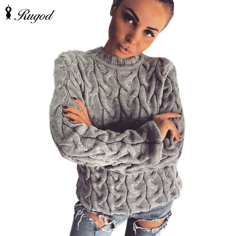 Special Offer RUGOD 2018 wiosna skręcone dzianiny sweter dla kobiet moda wiele kolorów O Neck z długim rękawem luźne pulowerowe topy Pull Femme Hiver Discount 36% Today!