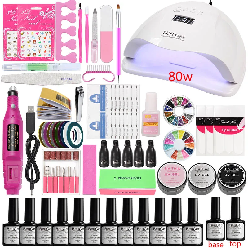 Special Offer 45 w 80 w Led lampa do paznokci zestaw do manicure zestaw żel polski 12 lakier do paznokci zestaw do paznokci akrylowych maszyna do manicure zestaw uchwytów Discount 40% Today!