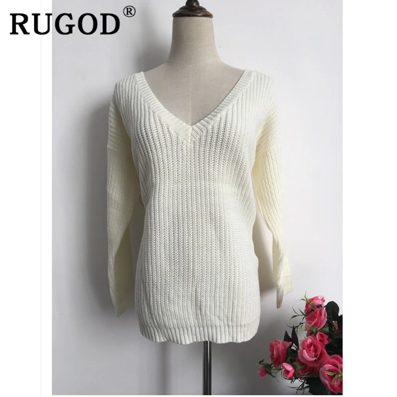 Special Offer Rugod 2019 nowy seksowny Backless sweter w szpic kobiet sweter jesień zima sweter z dzianiny w stylu casual sweter Femme ponadgabarytowych bluzy 7 luźnych jednolitych kolorów jesiennych i zimowych swetrów swetry damski Discount 49% Today!