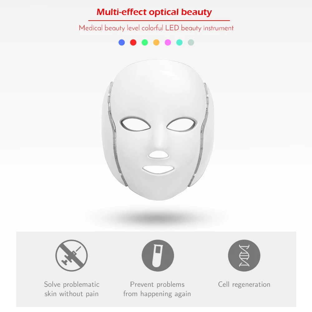 Special Offer 7 kolory jasne LED maska na twarz z szyi odmładzanie skóry pielęgnacja twarzy piękno anty trądzik terapia wybielanie instrumentu Discount 49% Today!