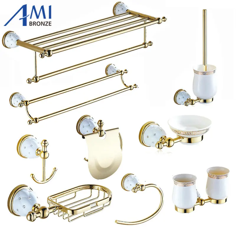 Special Offer Seria 63GD złoty polski mosiądz i diament ścienny zestawy akcesoriów łazienkowych wieszak na ręczniki półka na ręczniki uchwyt na papier Discount 55% Today!