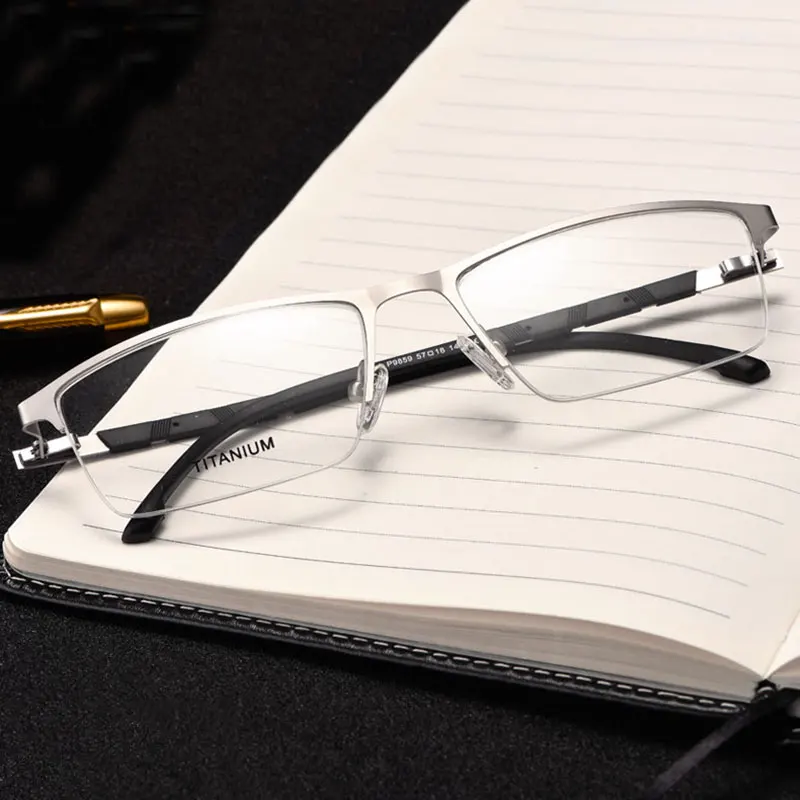 Special Offer Reven Jate P9859 optyczne biznes tytanu ramki okularów dla okulary męskie pół okulary bez oprawek z 4 opcjonalne kolory Discount 60% Today!
