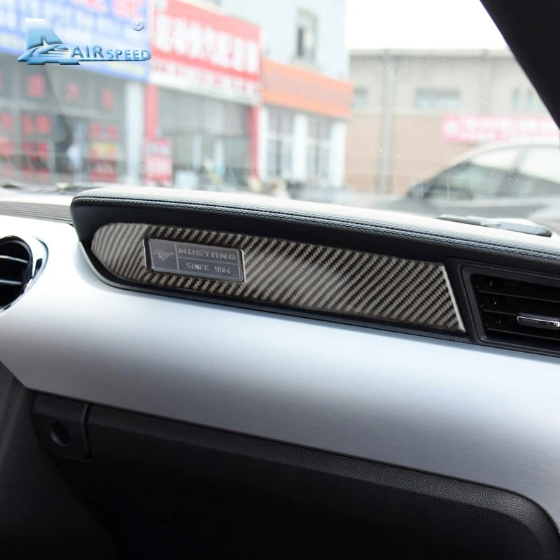 Special Offer Airspeed Carbon Fiber dekoracje na deskę rozdzielczą samochodu taśmy naklejki siedzenie pasażera po stronie dla Ford Mustang 2015 2016 2017 akcesoria Discount 25% Today!