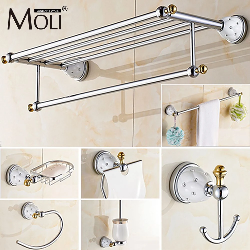 Special Offer Nowoczesne błyszczące akcesoria do kąpieli chromowane wykończenie stojak na papier toaletowy ręcznik półka barowa uchwyt na szczotki do montażu na ścianie zestaw sprzętu łazienkowego Discount 28% Today!
