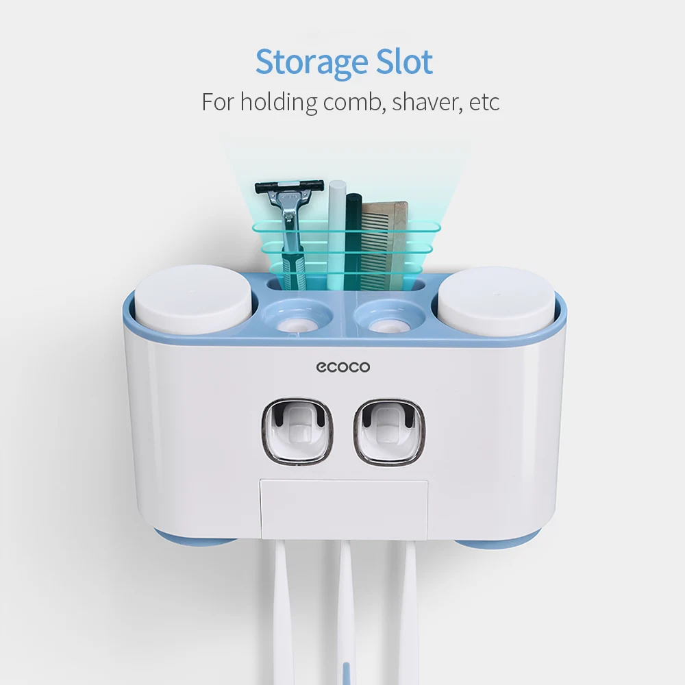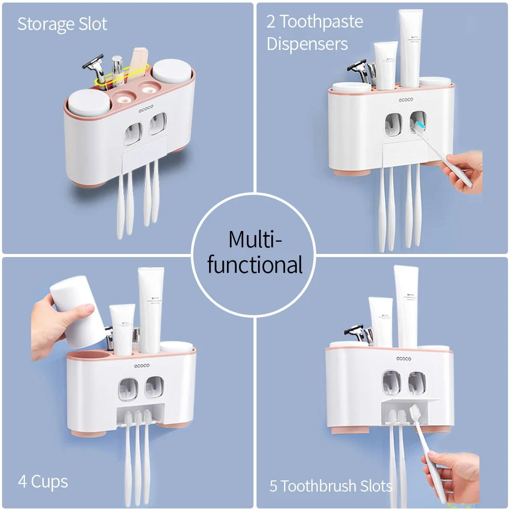 Special Offer Ecoco uchwyt na szczoteczki do zębów do montażu naściennego pasta do zębów zestaw akcesoriów łazienkowych stojak do przechowywania pasty do zębów z 4 kubkami Discount 40% Today!