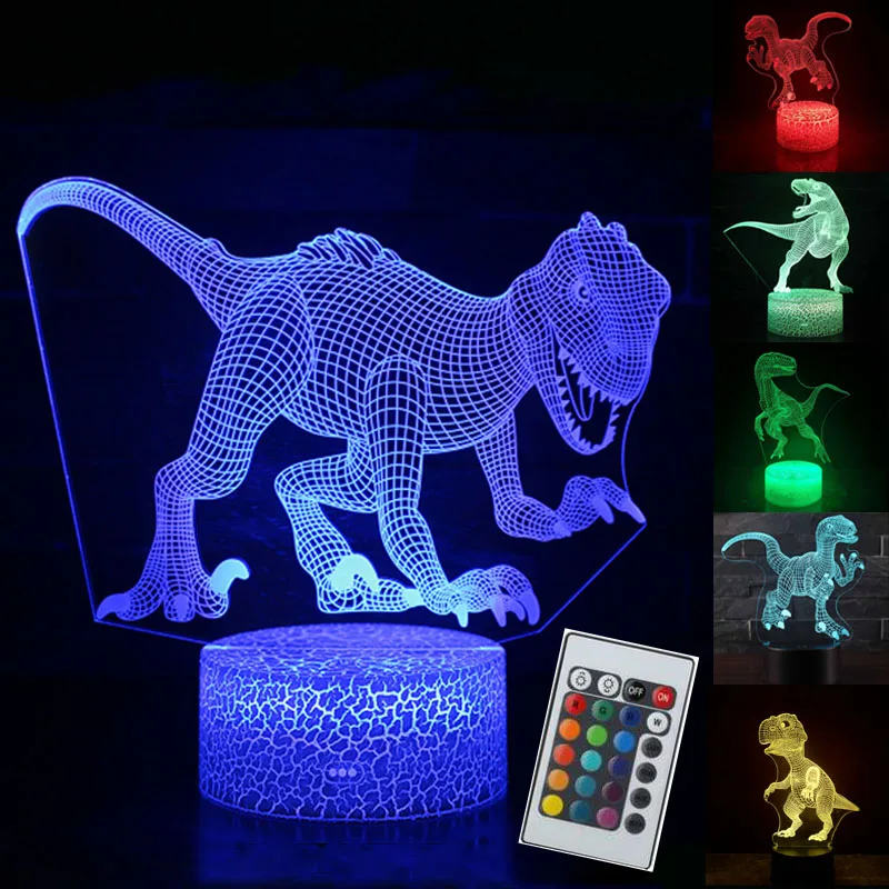 Special Offer 3D Illusion dinozaur 7 kolor LED pilot dotykowy Sleeping Nightlight zwierząt zapalić świecące w ciemności zabawki chłopiec prezent urodzinowy Discount 41% Today!