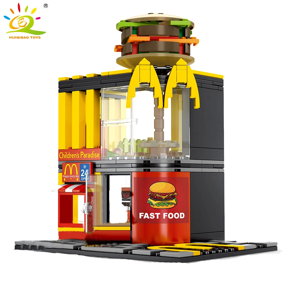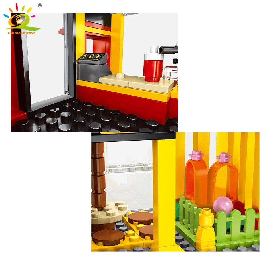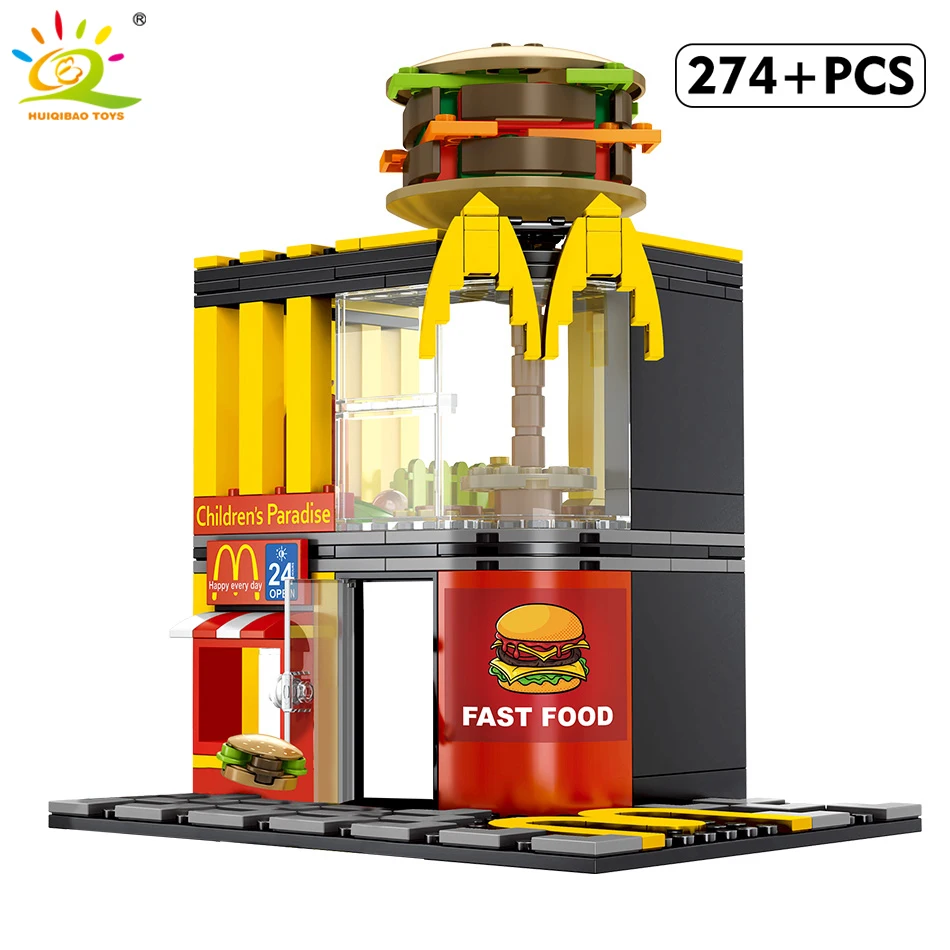 Special Offer 274 sztuk Fast Food Hamburger Store Street View Model klocki Legoing City architektura cegły zabawki dla dzieci Discount 53% Today!